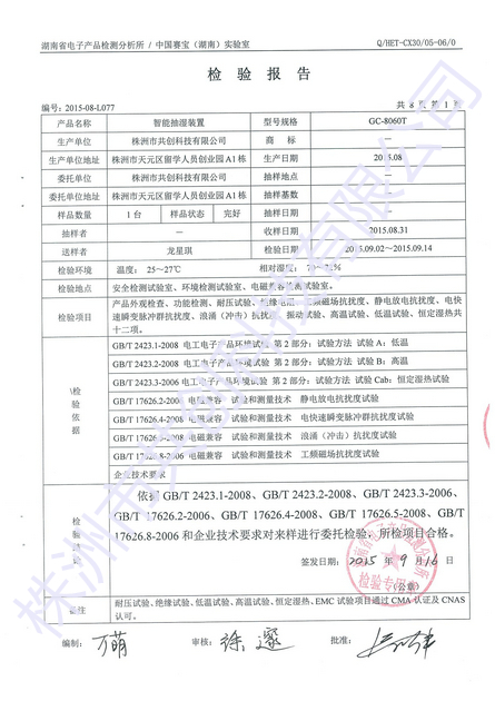 GC-8030智能型抽濕裝置是采用半導(dǎo)體制冷除濕方式,主動將密閉空間的潮濕空氣在風(fēng)扇的作用下吸入除濕風(fēng)道,空氣中的水汽經(jīng)過半導(dǎo)體制冷機構(gòu)后冷凝成水,再通過導(dǎo)水管排出柜體,可以達到很好的除濕效果。通過降低空氣中含水量,使相對濕度和溫度同時下降,幾乎不提高溫度,不產(chǎn)生溫差帶來的byh不好影響,從根本上避免或減少了事故的發(fā)生,也不會因高溫而加速柜內(nèi)器件及柜體的老化。智能型除濕裝置把被動防止凝露方式,改為主動引導(dǎo)凝露,防止柜內(nèi)設(shè)備老化、絕緣強度降低、二次端子擊穿、材料霉變及鋼結(jié)構(gòu)件銹蝕等安quan隱患,保證電網(wǎng)安quan運行。設(shè)備內(nèi)部發(fā)生凝露引起爬電、閃絡(luò)事故,一般發(fā)生在以下幾種情況:一是地區(qū)溫度高,天氣溫度變化大,開關(guān)柜底部濕潤,有的電纜溝甚至有積水;二是有的開關(guān)柜在地下室,濕度高,貴柜體內(nèi)溫度特別是接近地面的溫度低于環(huán)境溫度;三是有的設(shè)備處于暫時停運狀態(tài),事故就隨之發(fā)生。為保證電網(wǎng)系統(tǒng)的安quan運行,電氣設(shè)備的長壽命、安quan使用,電力系統(tǒng)對柜內(nèi)防潮、防凝露提出了更高的要求。